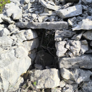 Ispred trima nalazi se malo dvorište okruženo kamenim zidovima, a lijevo od trima nalazi se cisterna (gustirna). Kupola trima se potpuno urušila. Blago trapezoidni ulaz vodi u nepravilnu unutrašnjost, koja je prekrivena kamenim pločama kupole. Trim se više ne koristi.