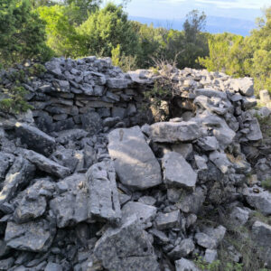 Der Trim befindet sich, sehr schwer zugänglich, am Berghang nordwestlich von Dugi Dolac. Er wurde in der Grundkarte Kroatiens (Geoportal DGU) gefunden. Versteckt im dichten Buschwerk steht hier ein Ensemble aus Trim, Zisterne und den Resten eines kleinen Steinhauses oder Hofes.