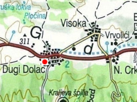 Im Mai 2025 wurde am südwestlichem Ortsrand von Dugi Dolaz dieses interessante landwirtschaftliche Gemenge aus 13 Trims, zum Teil mit kleinen Vorhöfen, Steinhäusern, 4 Dreschböden und diversen Steinmauern gefunden. Der Bereich ist mit Gestrüpp bewachsen und schwer zugänglich.