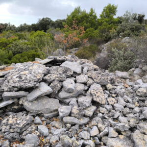 Der Trim befindet sich im Gebüsch, nördlich des Weges, der von Roskarnica nach Osten zum Gipfel Sv. Nikola führt. Er wurde in Google Maps gefunden.
