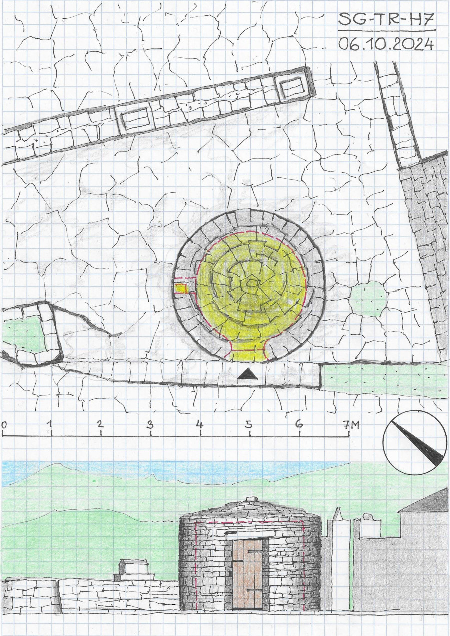 Izgled građevine je inspiriran trimom, ali se razlikuje od povijesnih trime u svojim proporcijama (ulazni otvor, „kupola“). Zgrada vjerojatno nije čista suhozidna konstrukcija. Unutrašnjost, nažalost, nije mogla biti posjećena, pa se pretpostavlja da visoki unutarnji prostor također nije pokriven konzolnom kupolom.
